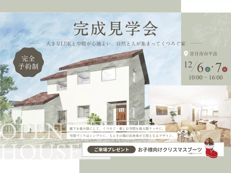 【12/6・7】完成見学会「自然と人が集まってくつろぐ家」in 廿日市市平良