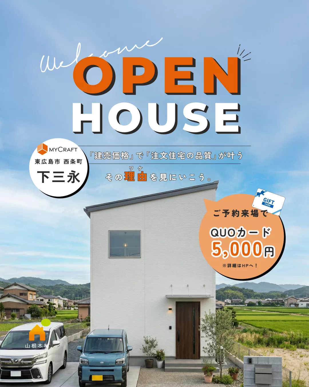 【4月限定】建売住宅の価格で手に入れる 注文住宅クオリティーの家「MyCraft」見学会 in 東広島市