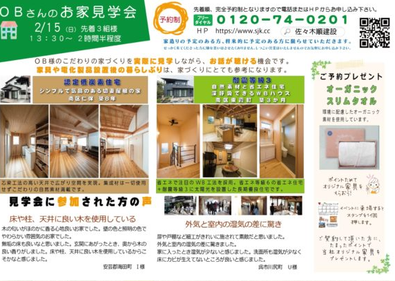 2月15日 OBさんのお家見学会を開催します。