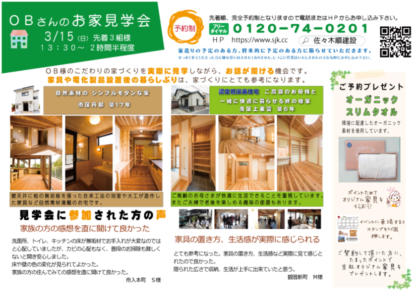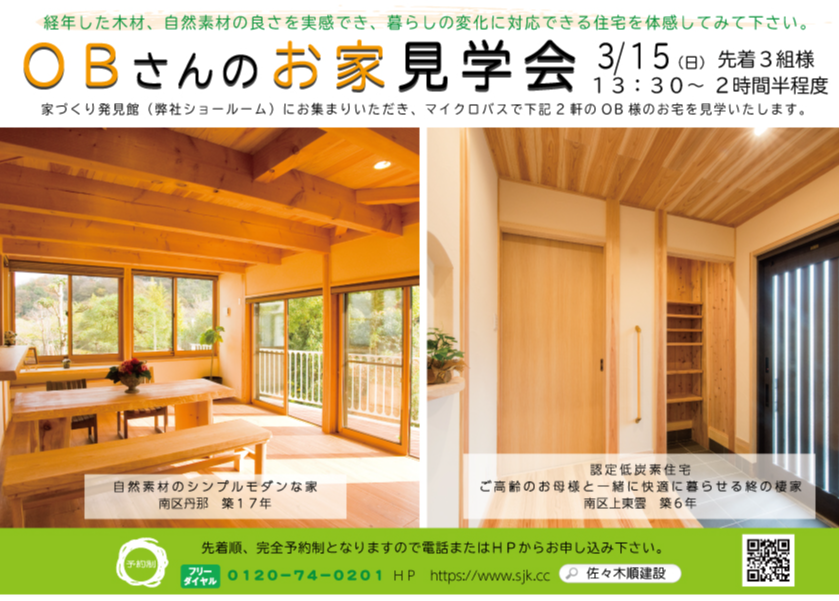 3月15日 OBさんのお家見学会を開催します。